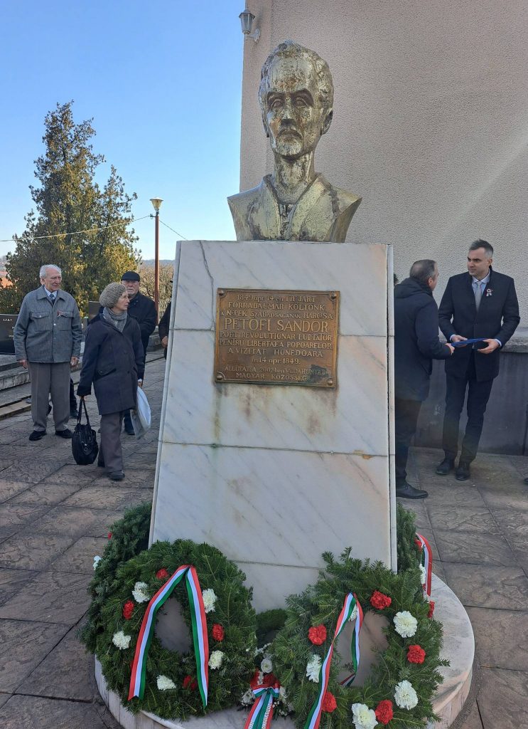 A vajdahunyadi megemlékezés keretében a református műemléktemplom előtt álló Petőfi Sándor mellszobránál helyezték el a koszorúkat. Mint elhangzott, a forradalmár költő a dél-erdélyi magyar szórványban is az összetartozás jelképe.